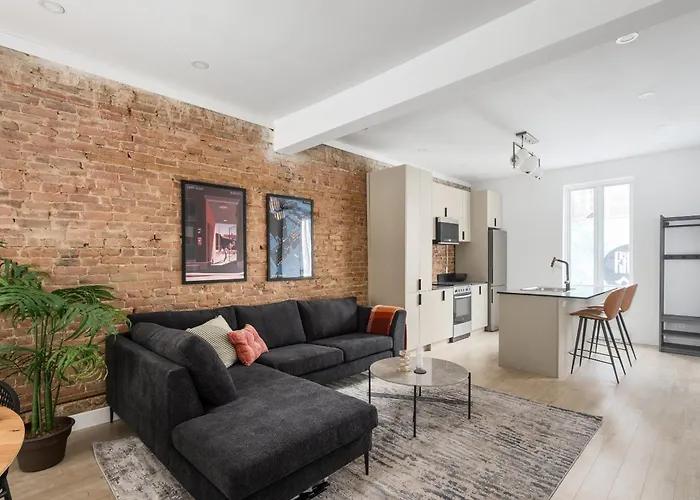 Situado a poco más de 10 minutos en coche del Jardín botánico de Montreal, este apartamento también está a poco más de 25 minutos a pie de la Ciudad subterránea. El Mtl Central Stay Apartments está situado a una distancia de 100 metros de Arena Camillien Houde, a unos cuantos pasos de la estación de metro Beaudry. Este establecimiento se encuentra a poco más de 30 minutos a pie de la Biosfera.